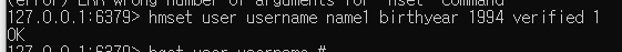 - Hashes : 내부에 key-value 구조를 하나더 가지는 Redis 자료 구조